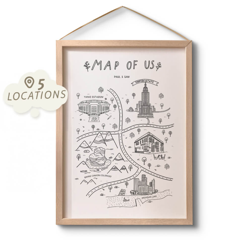 After your purchase, we’ll email a form to capture the people, pets, locations, and stories for your map. You can upload photos, too. A digital draft will be sent within 72 hours.